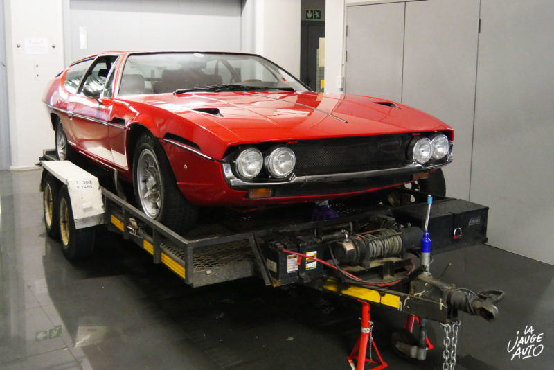Un peu plus loin, dans un couloir, une Lamborghini Espada posée sur une remorque et bien entourée par deux agents de sécurité ! Pas dans un état concours mais il n’empêche que ça reste une Lamborghini au pays de Nelson Mandela.