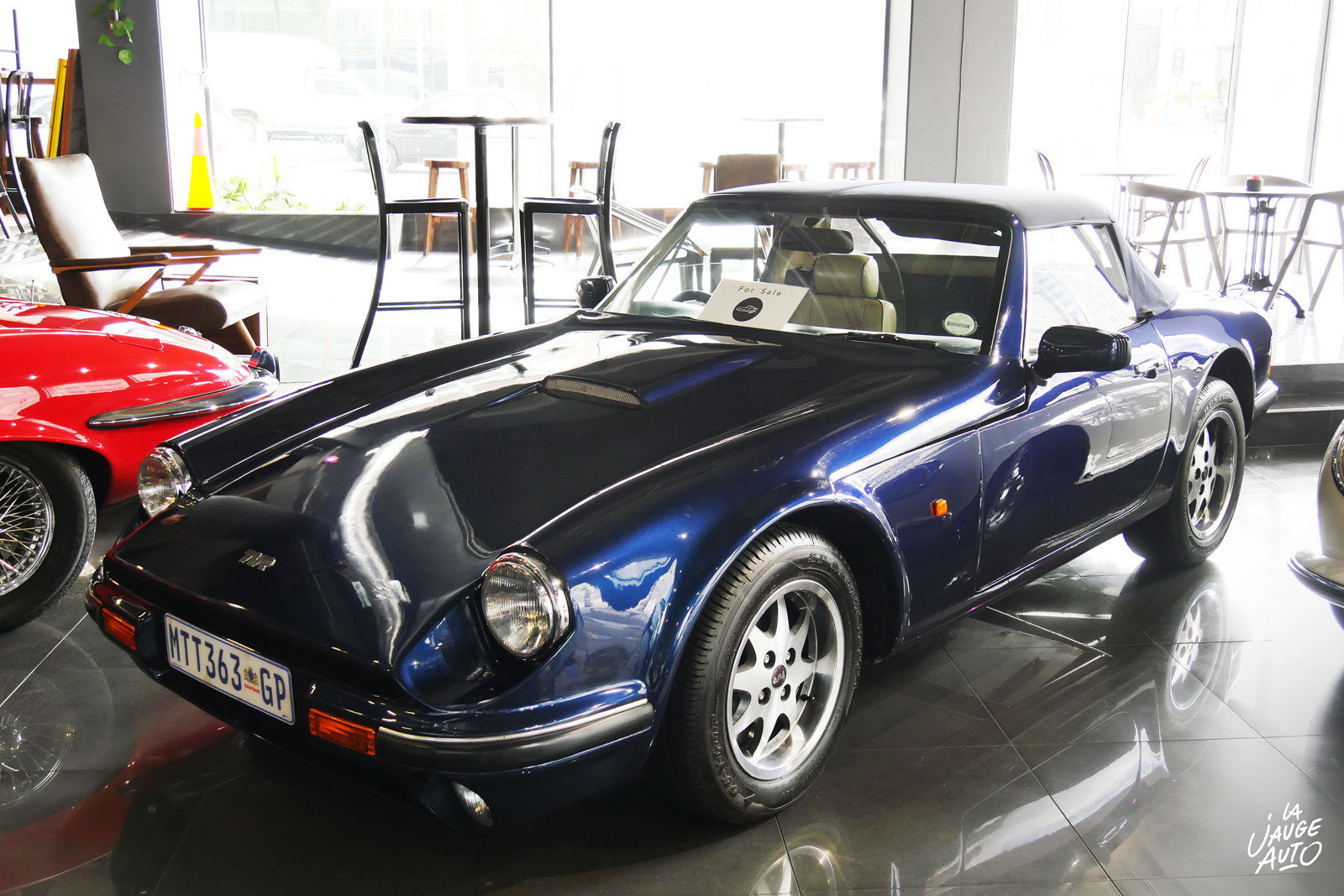 Dans une autre pièce, une Mercedes-Benz SL 500, une Fiat 850 Spider… encore des Mercedes, Porsche, Alfa, TVR et même quelques américaines.