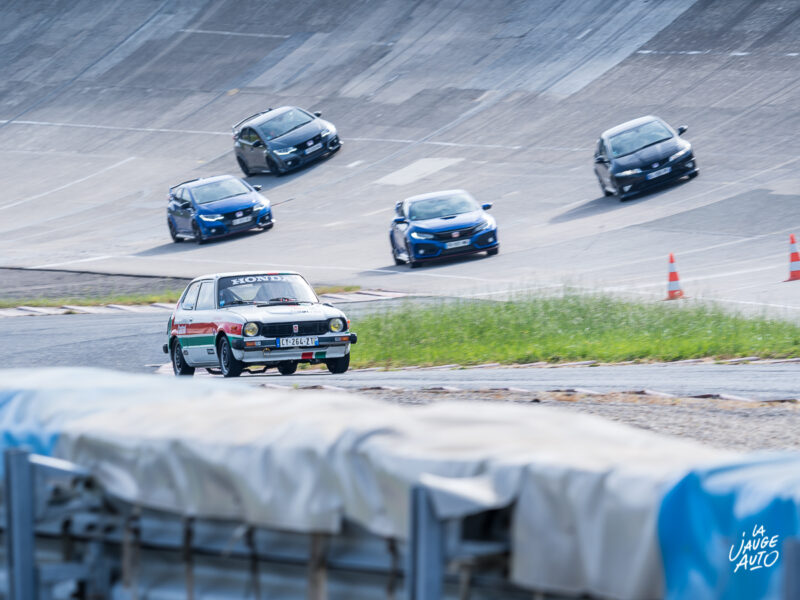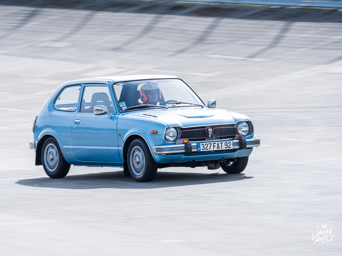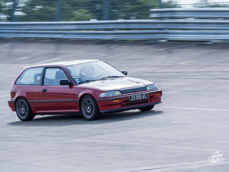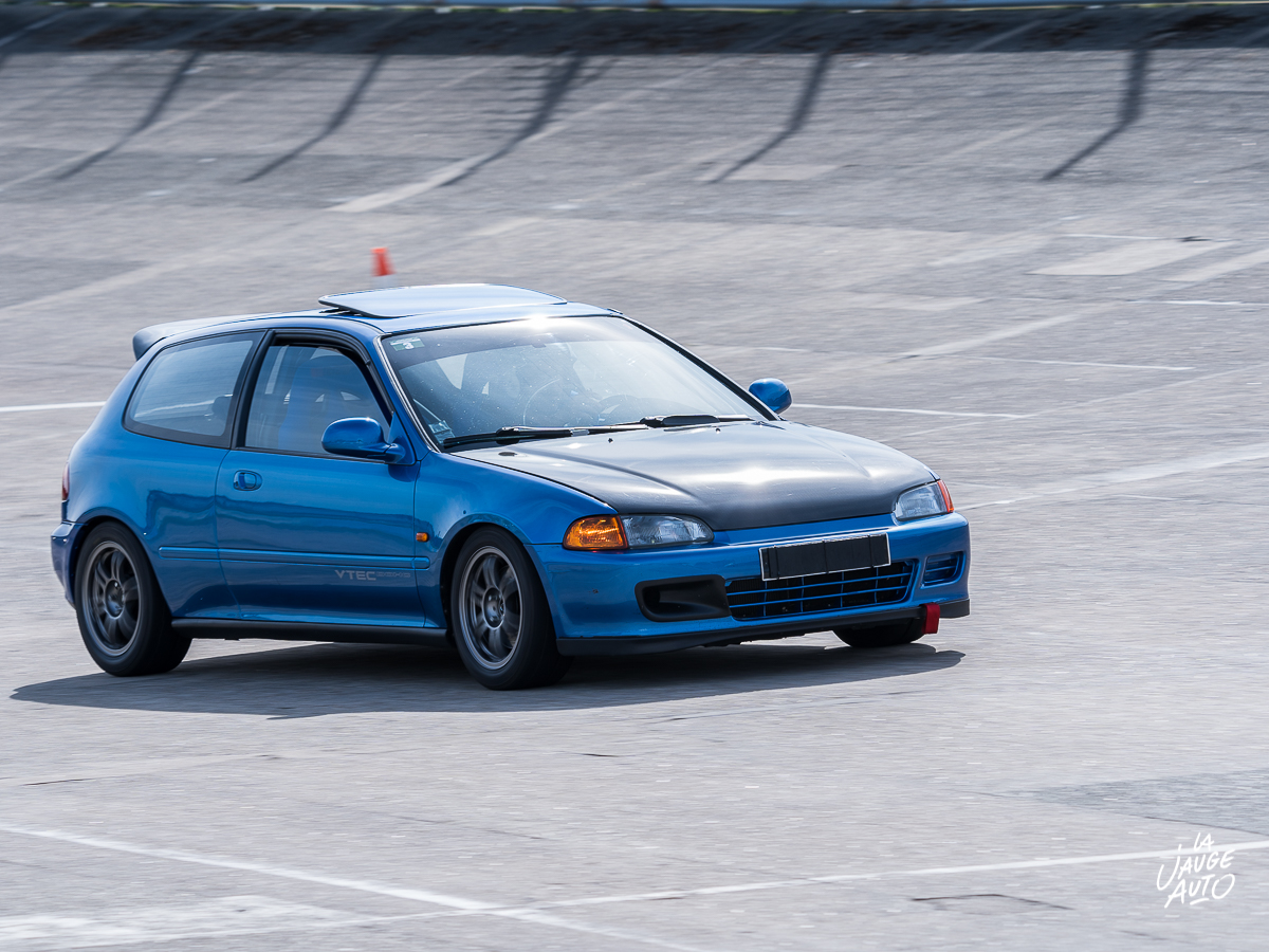 Ce déplacement du célèbre motoriste était aussi l’occasion de fêter les 50 ans de sa fameuse Civic. Un plateau de roulage lui était d’ailleurs dédié, tout comme notre voiture invitée qui était une Honda Civic ej9 quelque peu préparé. Siège baquet, ligne échappement intox type spoon, kit carrosserie, suspension rabaissée… Une Honda Civic qui respire et qui a fait du bruit.