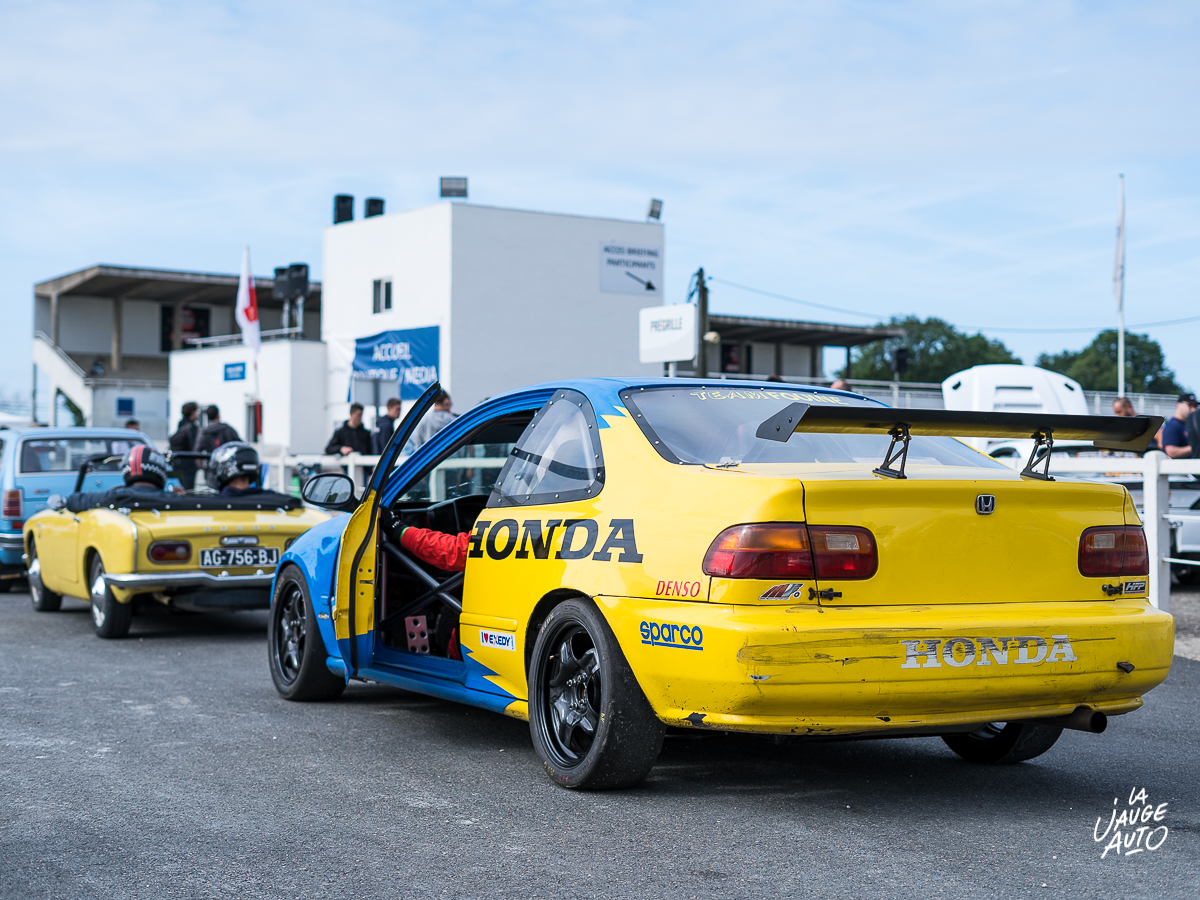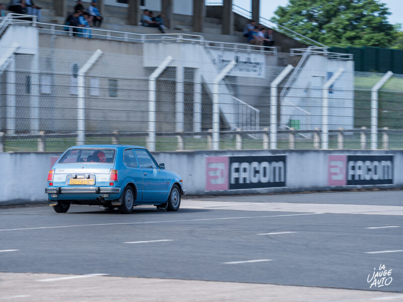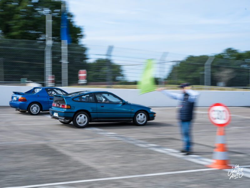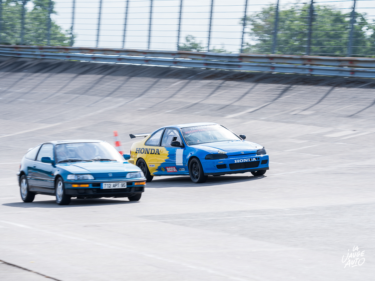 Ce déplacement du célèbre motoriste était aussi l’occasion de fêter les 50 ans de sa fameuse Civic. Un plateau de roulage lui était d’ailleurs dédié, tout comme notre voiture invitée qui était une Honda Civic ej9 quelque peu préparé. Siège baquet, ligne échappement intox type spoon, kit carrosserie, suspension rabaissée… Une Honda Civic qui respire et qui a fait du bruit.