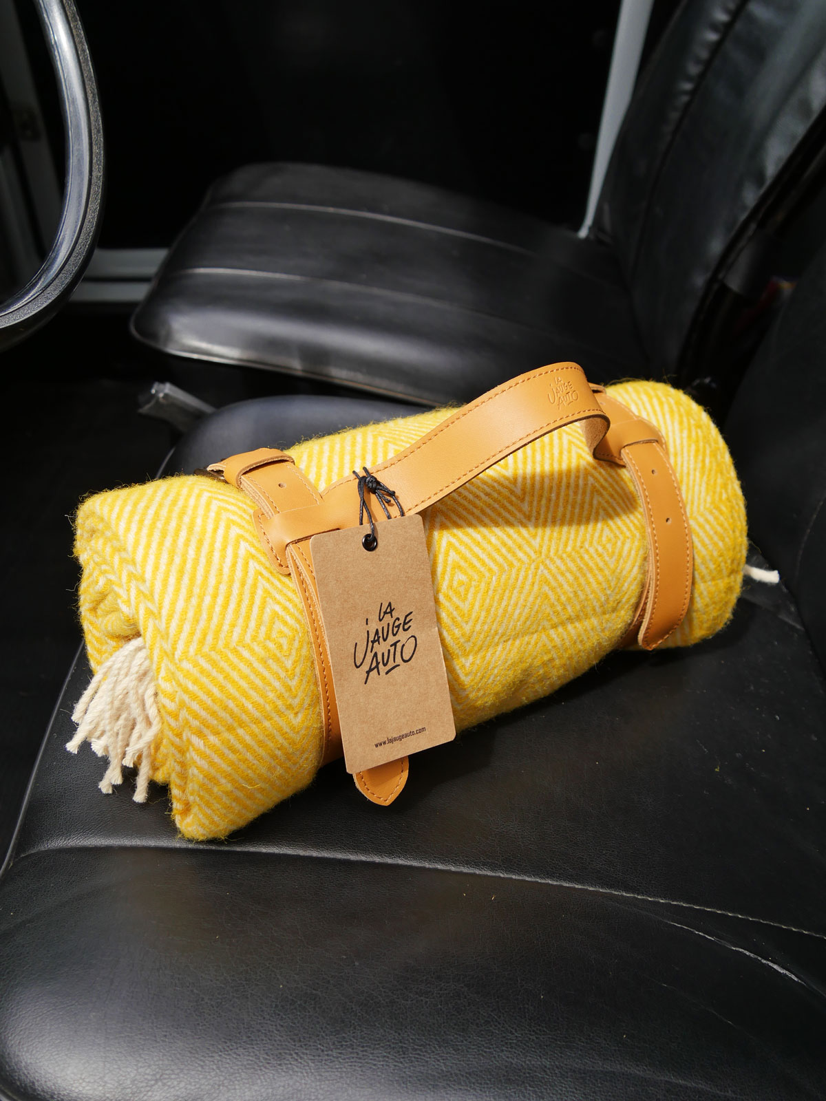 Pour faciliter le rangement et le transport du plaid, il fallait un accessoire aussi pratique que beau. Ce dernier se devait également d’utiliser une matière naturelle, résistante et durable. Ainsi, nous avons opté pour une sangle en cuir pleine fleur.